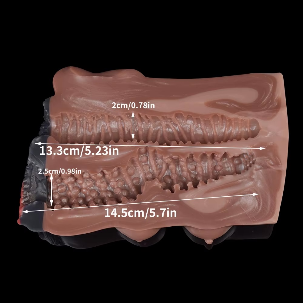 A Dusk Grazer egy újfajta maszturbátor, ami nem harsog, hanem hívogat. Ez a különleges, kétcsatornás álomlény karamellás-barna testtel és sötét, kontrasztos nyílásokkal készült – olyan, mint egy erotikus naplemente, amit meg is markolhatsz. Orvosi minőségű folyékony szilikonból formázva, vízálló, rugalmas és kellemesen puha – épp olyan érzés, mint egy jól őrzött titokba belesimulni.