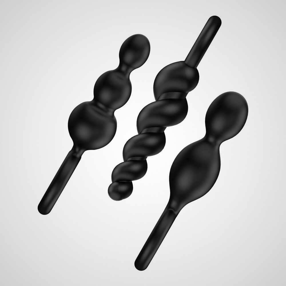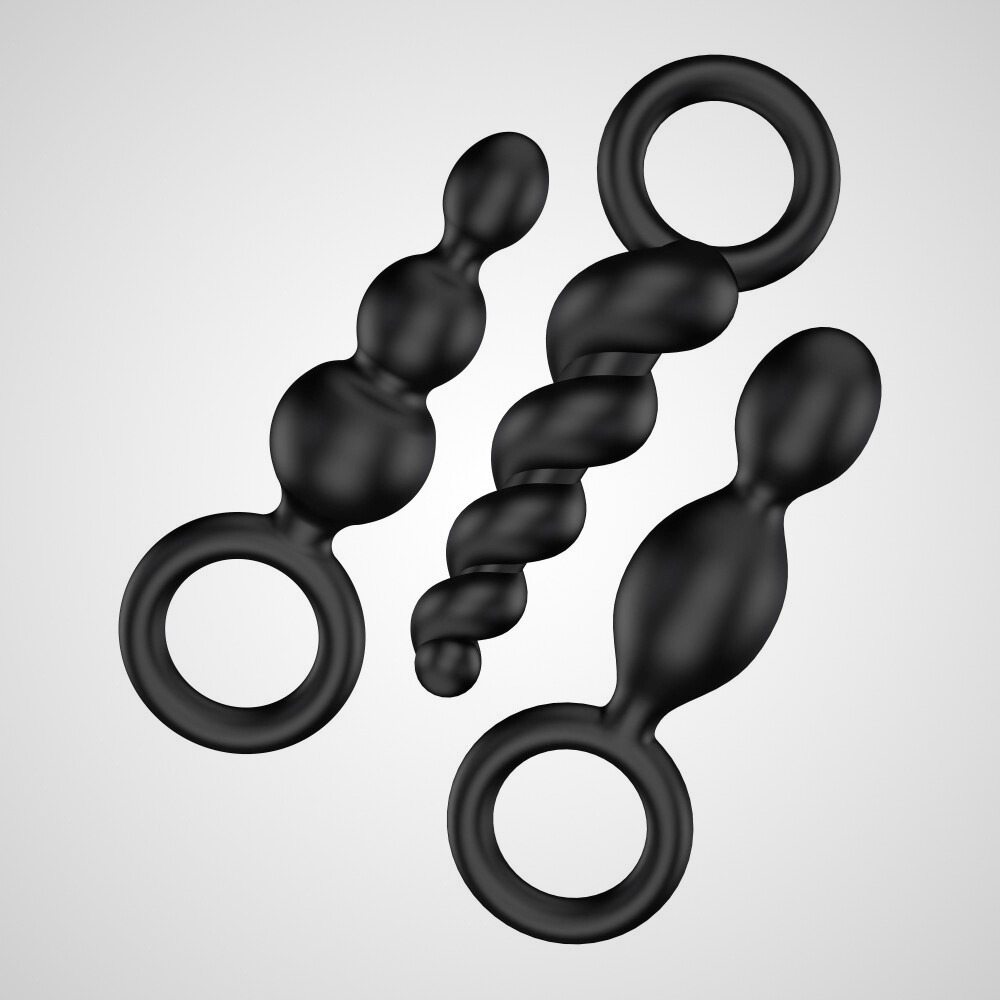 Ez a vízálló, orvosi szilikonból készült, háromdarabos análszett nemcsak bőrbarát és kezdőbarát, hanem minden egyes darabja más-más formával, textúrával és átmérővel érkezik (1,2-től egészen 3 cm-ig), hogy szépen fokozatosan tágítsa a határaidat — és a seggedet.